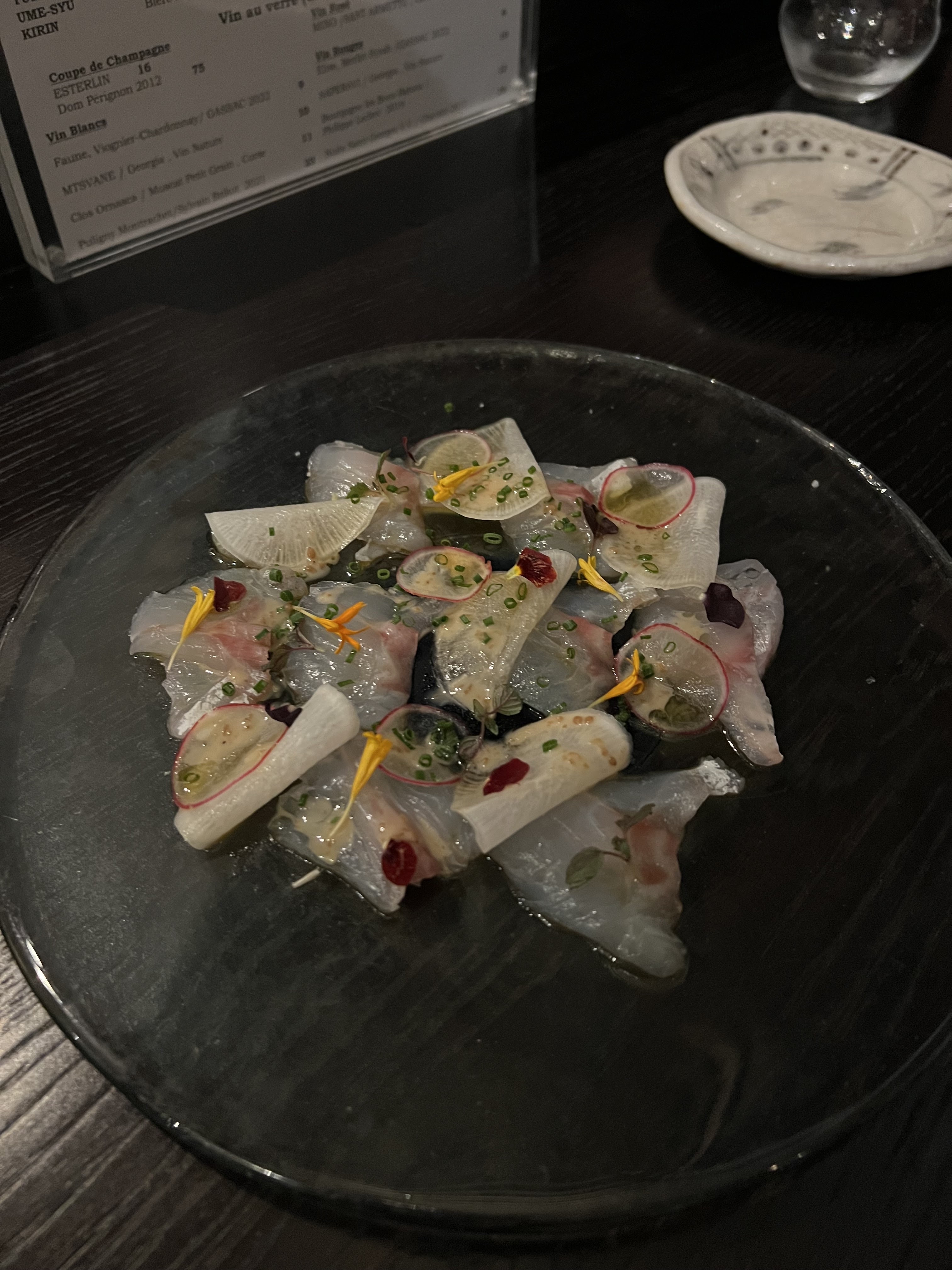 Je me faisais une joie de tester ce restaurant tant vanté sur ma liste. Mais quelle déception dès que l'on passe la porte ! Certes, la déco est soignée et l’ambiance intimiste avec une musique jazz en fond sonore donne un charme certain, mais ces quelques points positifs ne peuvent compenser les nombreuses lacunes. La nourriture, bien que joliment présentée, se révèle être un gouffre pour le porte-monnaie sans en valoir la peine. Les portions sont petites (elles sont pourtant censées être partagées) ce qui est une aberration quand on considère le prix exorbitant de 50€ par personne en moyenne, sans les boissons. Et après tout cela, on ressort avec la sensation de n’avoir pas assez mangé, ni d’avoir vraiment exploré les richesses de la cuisine japonaise. Quant au service, pour un restaurant avec un nombre de couverts limité, on aurait pu espérer une attention particulière, un accueil chaleureux, voire quelques explications sur les plats servis. Au lieu de cela, il faudra se contenter du strict minimum : un service glacial, presque désagréable, on se sent rapidement de trop. En résumé, un restaurant qui aspire au haut-de-gamme mais dont la cuisine et le service ne suivent pas. Une expérience qui ne mérite ni son prix ni le détour.