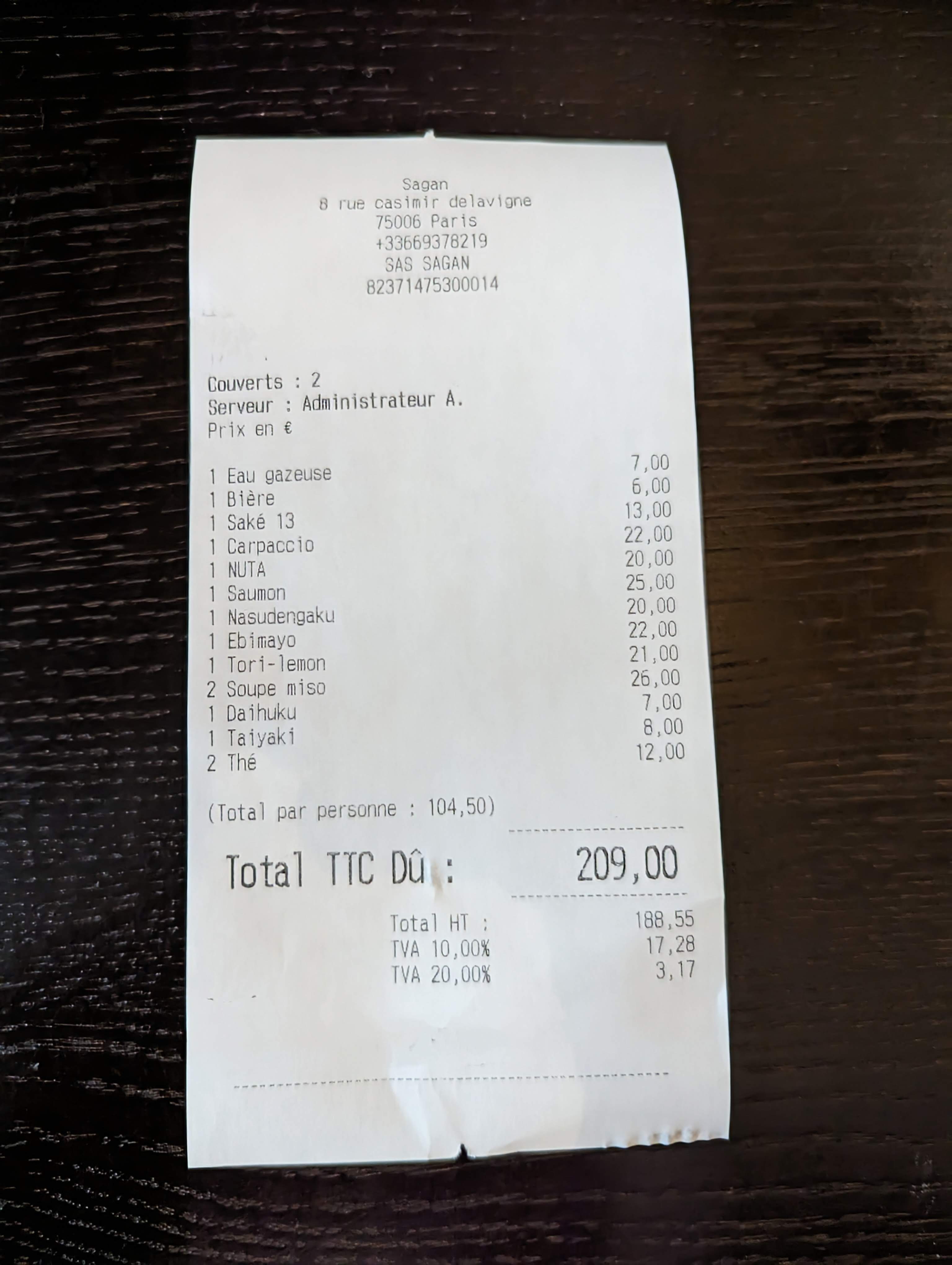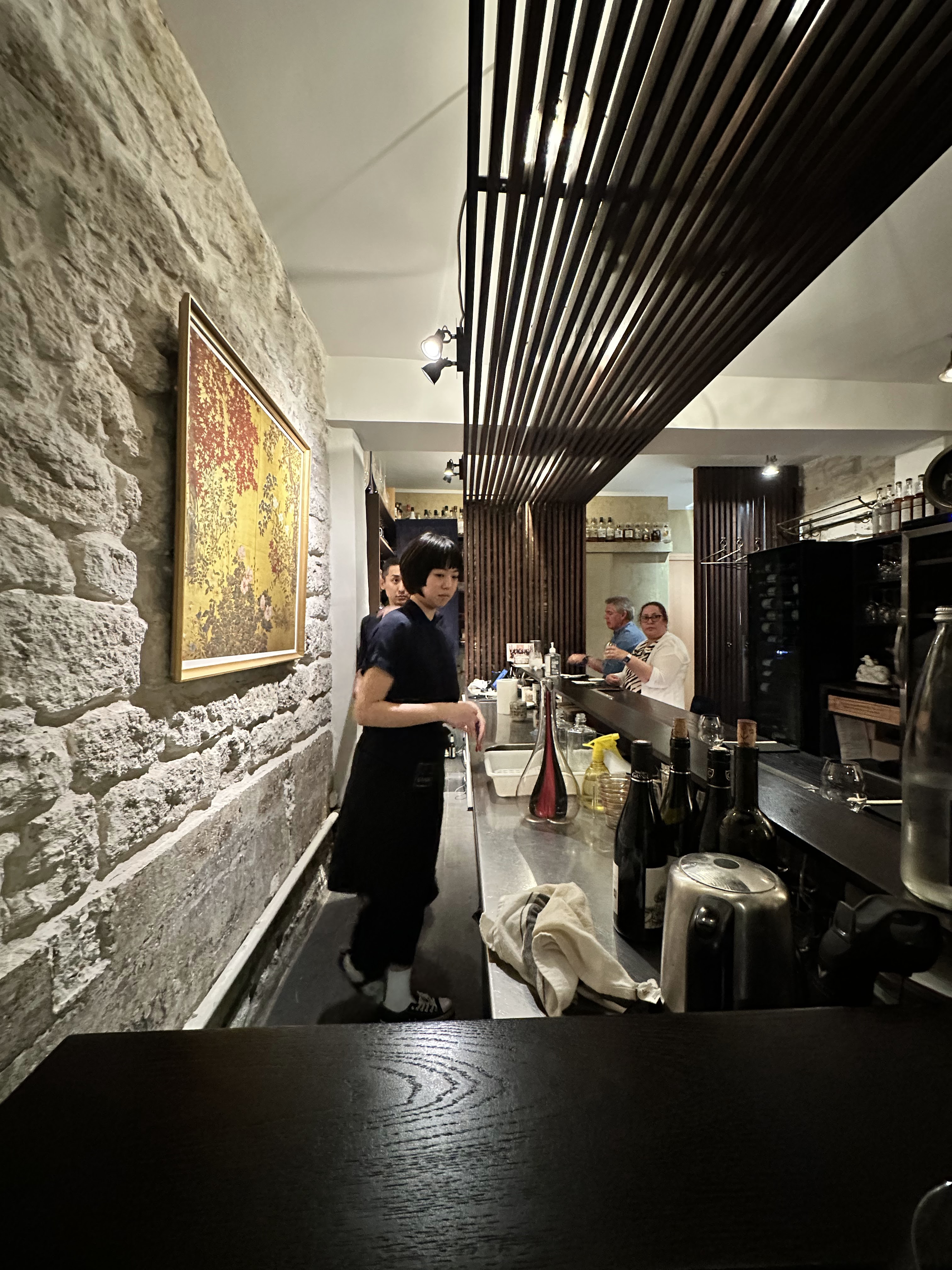 Un izakaya de luxe. Les prix dépassent facilement la vingtaine d’euros pour un plat à partager. La quantité est un poil insuffisante. Cependant, les mets étaient frais et bien exécutés. Pas incroyable mais très bons. Quand on y va, on ne doit pas compter son argent pour pouvoir se faire plaisir et explorer la carte. J’ai lu dans les avis des plaintes quant au service: je l’ai trouvé professionnel et discret. Ça m’allait. Ambiance intimiste, j’ai apprécié. Je pense qu’il est probable que j’y retourne!