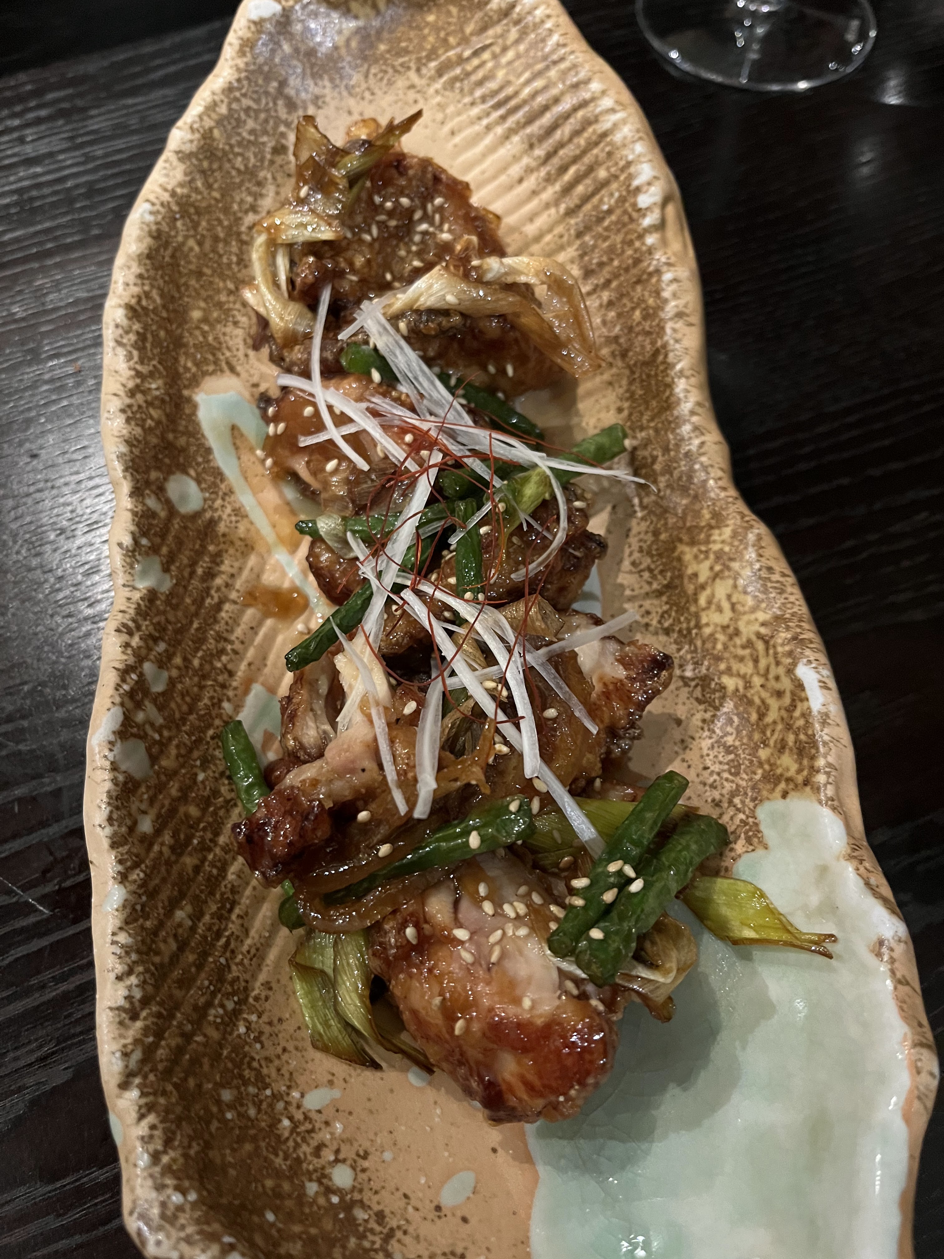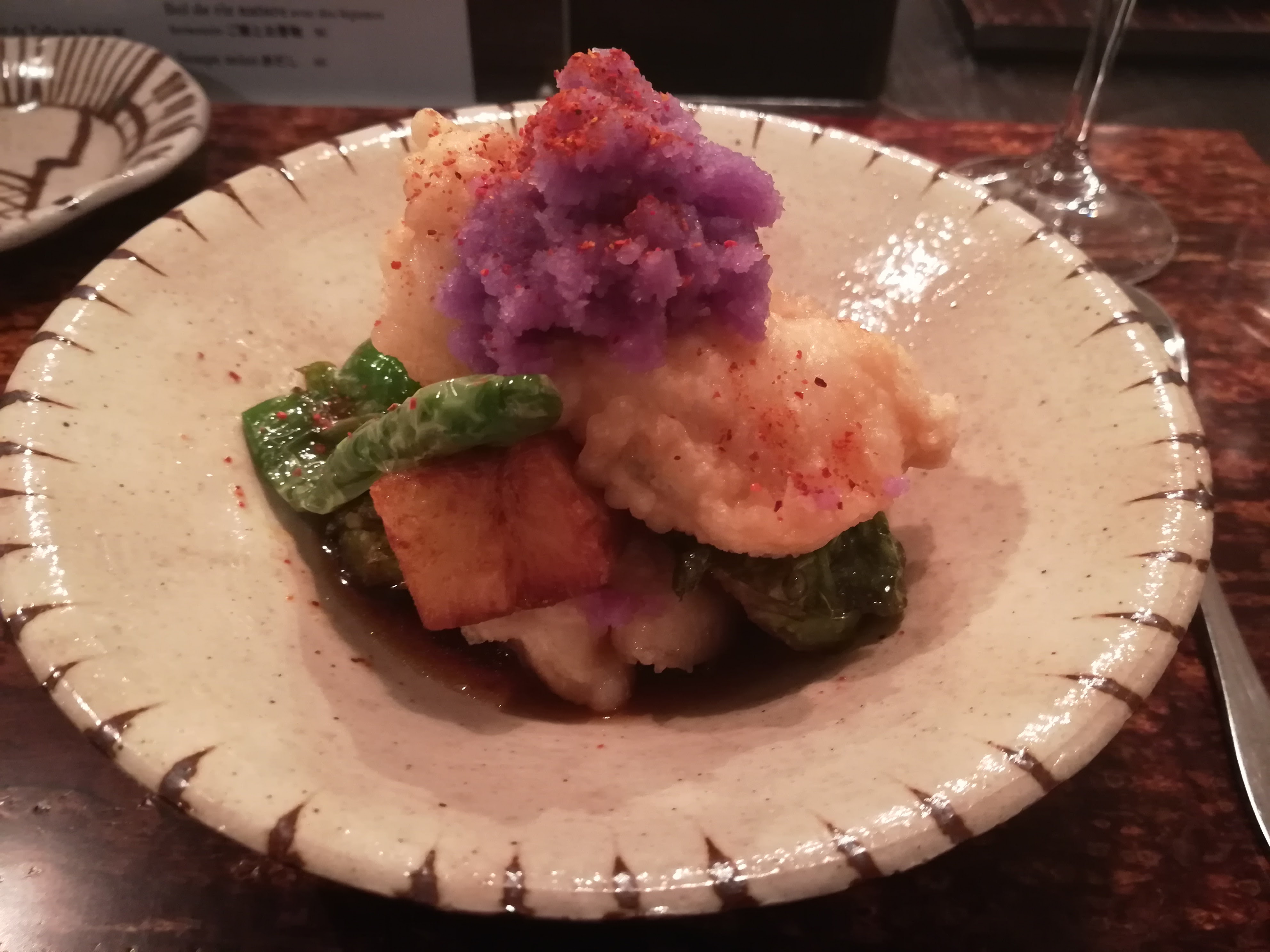 Excellente cuisine de style izakaya, élevée, dans un cadre intimiste. Une vaste carte des vins français et une sélection limitée de sakés, ce qui est étrange, car si vous êtes dans un izakaya et que vous commandez du vin français, vous vous trompez, à mon avis.