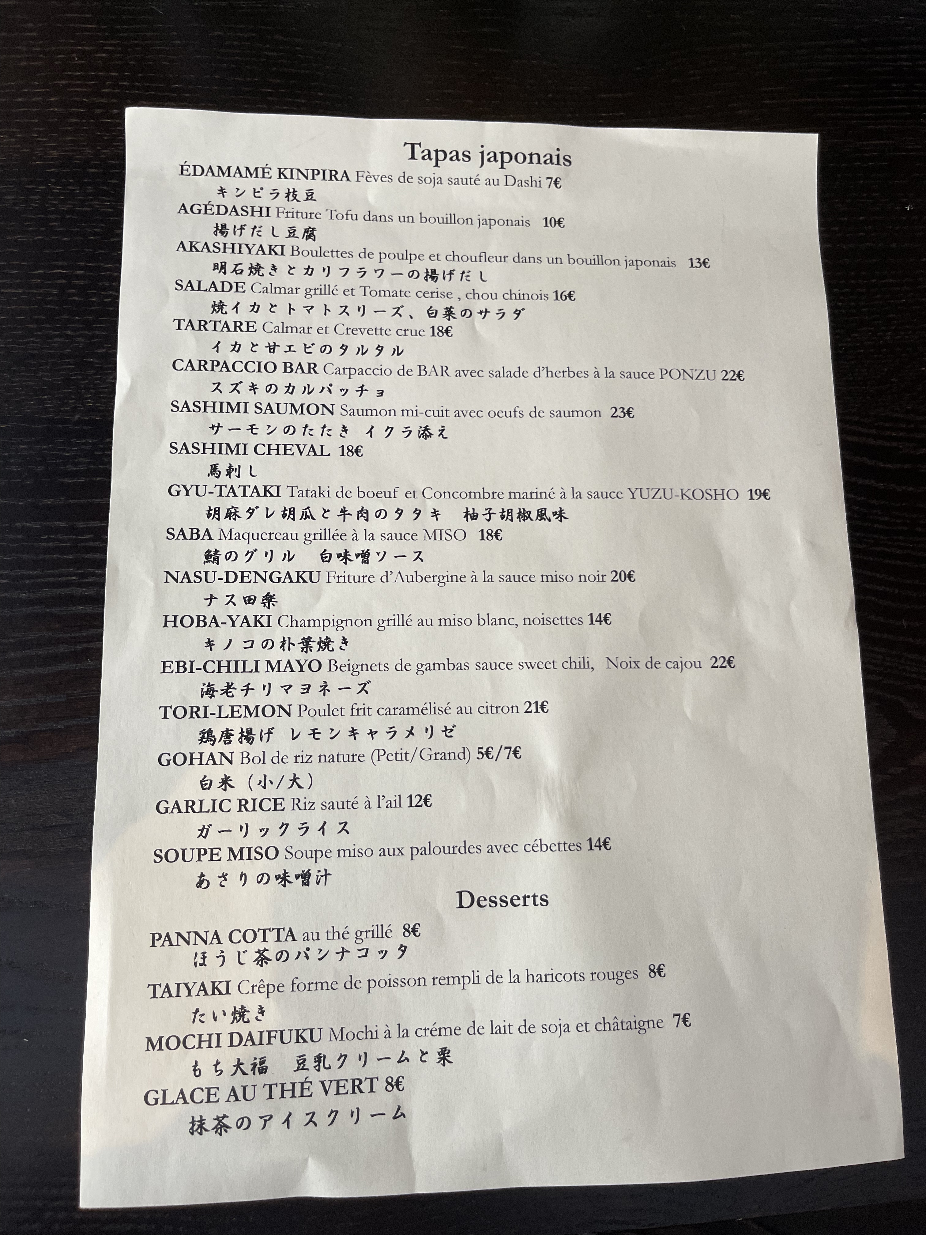 On retrouve la cuisine de feu lengue, grosse carte des vins de quoi ce faire plaisir en dégustant une confortable food japonaise.