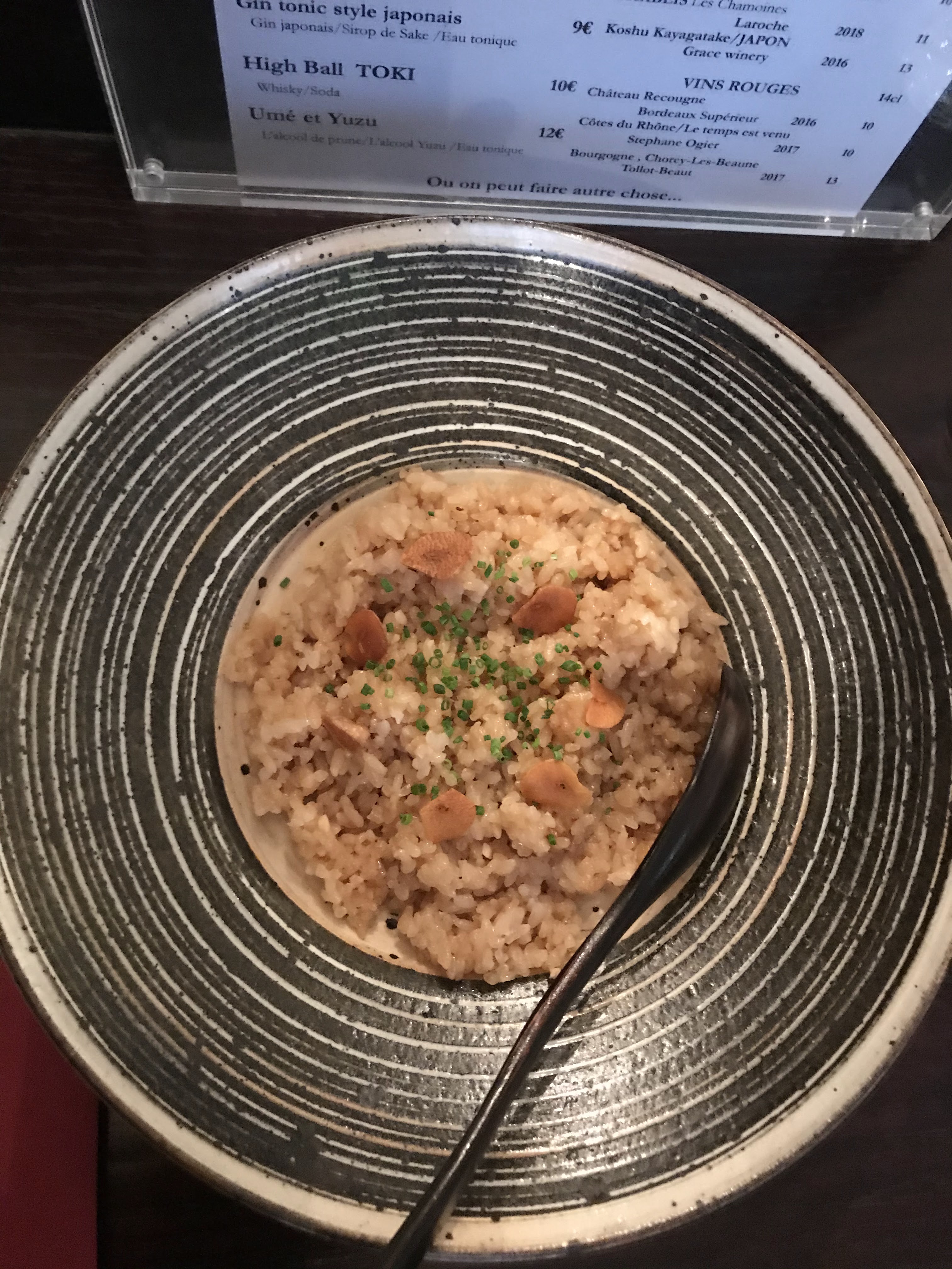 Vraiment superbe. Je vous conseille de prendre les tapas japonais. Tous etaient excellents, originaux. Goutez egalement le gin japonais servi dans un verre en bois. Le service etait rapide et parfait. Une vraie decouverte, nous reviendrons.