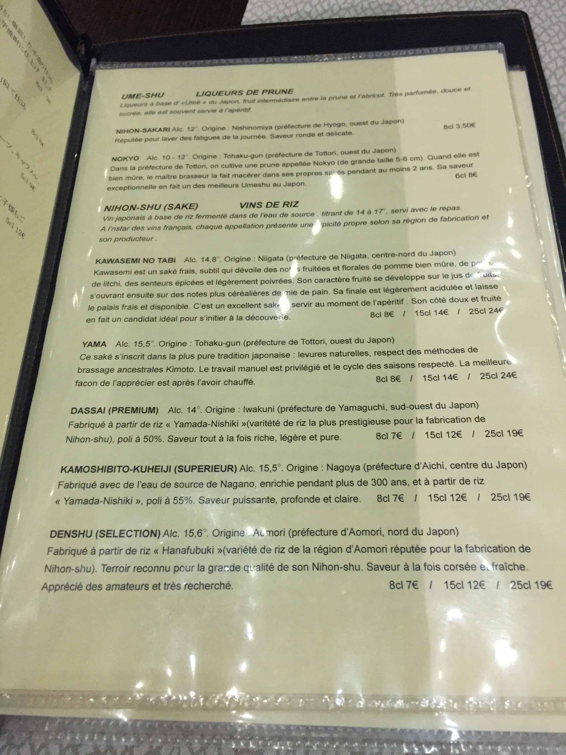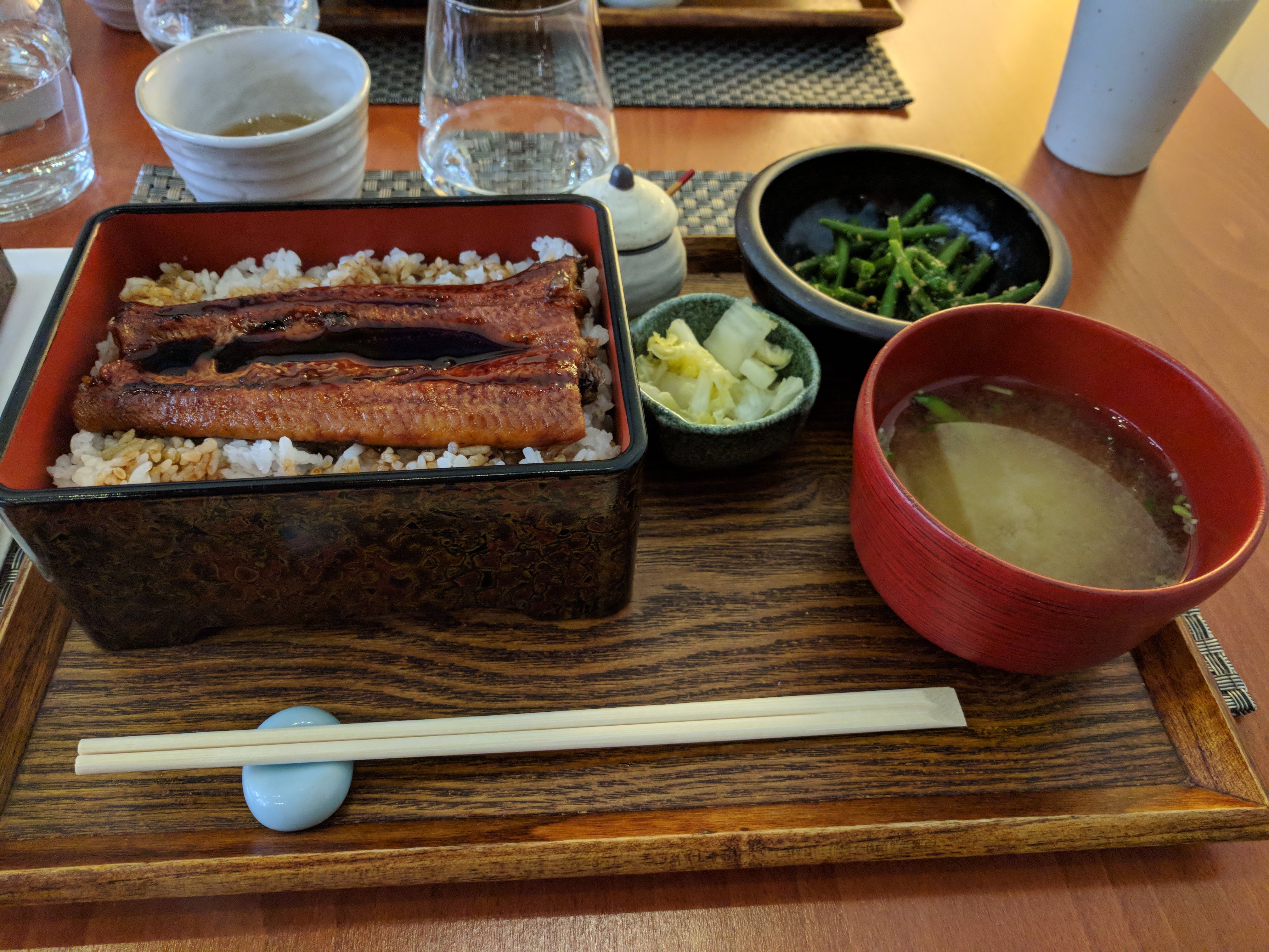 Tout est succulent. Le midi, me menu (hors dessert) est à 15€, ce qui est un peu plus cher qu'au Japon. L'anguille est forcément plus chère (23€ ou 28€ suivant la taille) ce qui correspond au coût au Japon. Bonnes portions.