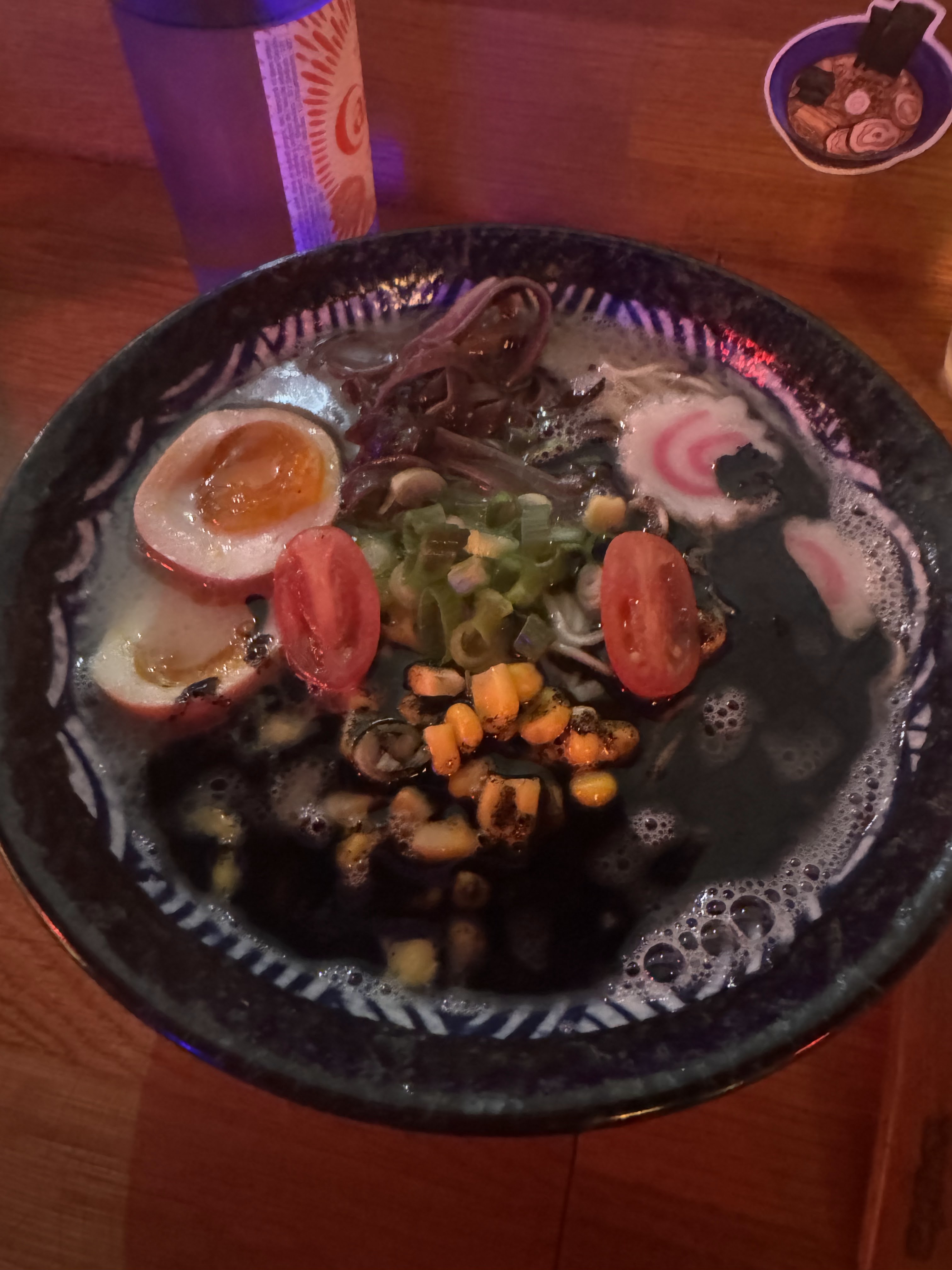 On entend un peu trop les serveurs se plaindre, faites le à l’arrière pas au comptoir ou tout le monde vous entend. J’ai pris le ramen au porc et à l’ail noir. Incroyable même si le porc était un poil trop gras pour moi mais ce sont mes préférences. En dessert, le gâteau en forme de poisson aux haricots rouges mais la pâte d haricots était comme diluée ?! Pas mauvais mais étrange c’est la première fois que j’en mange un dilué