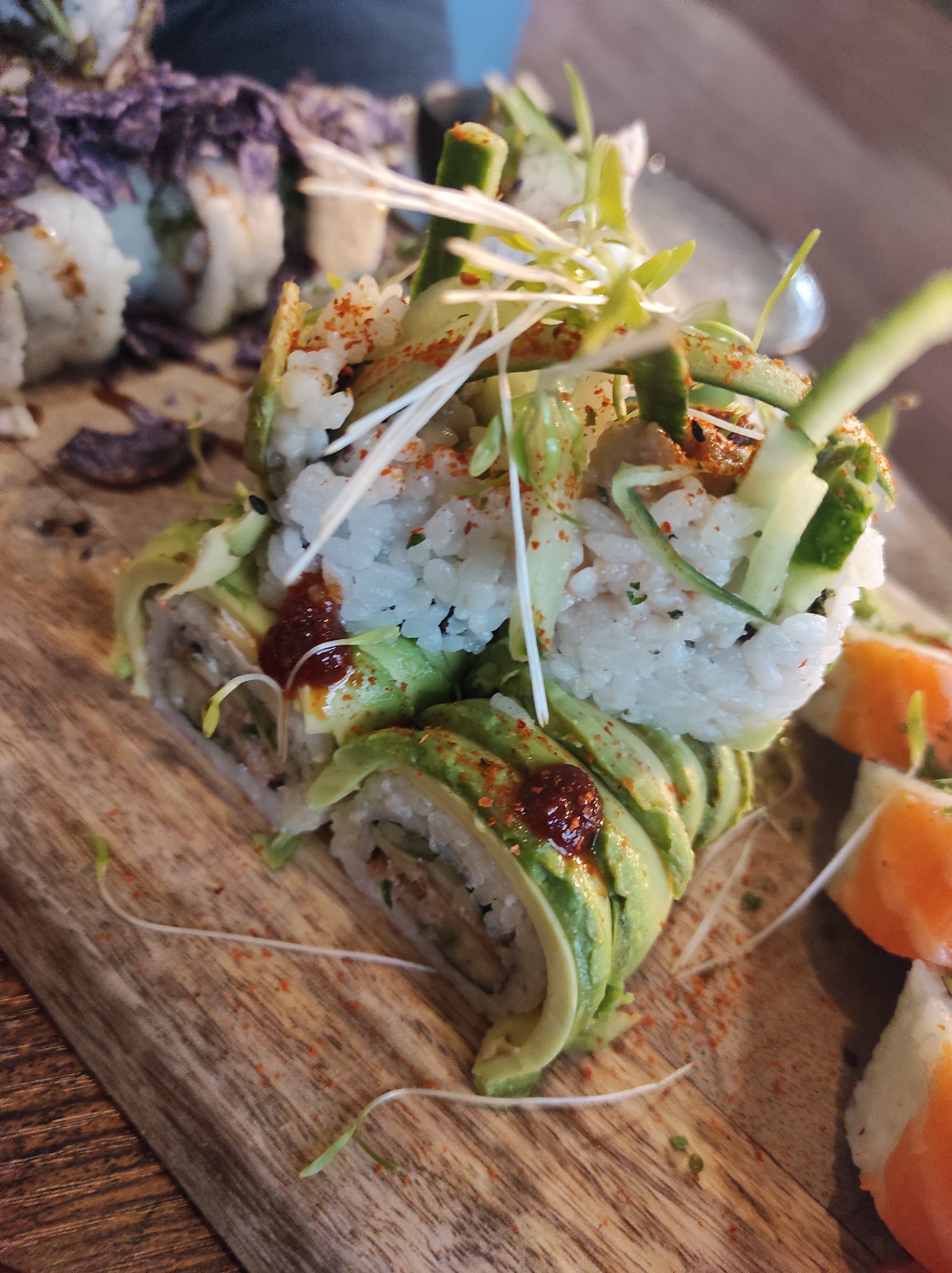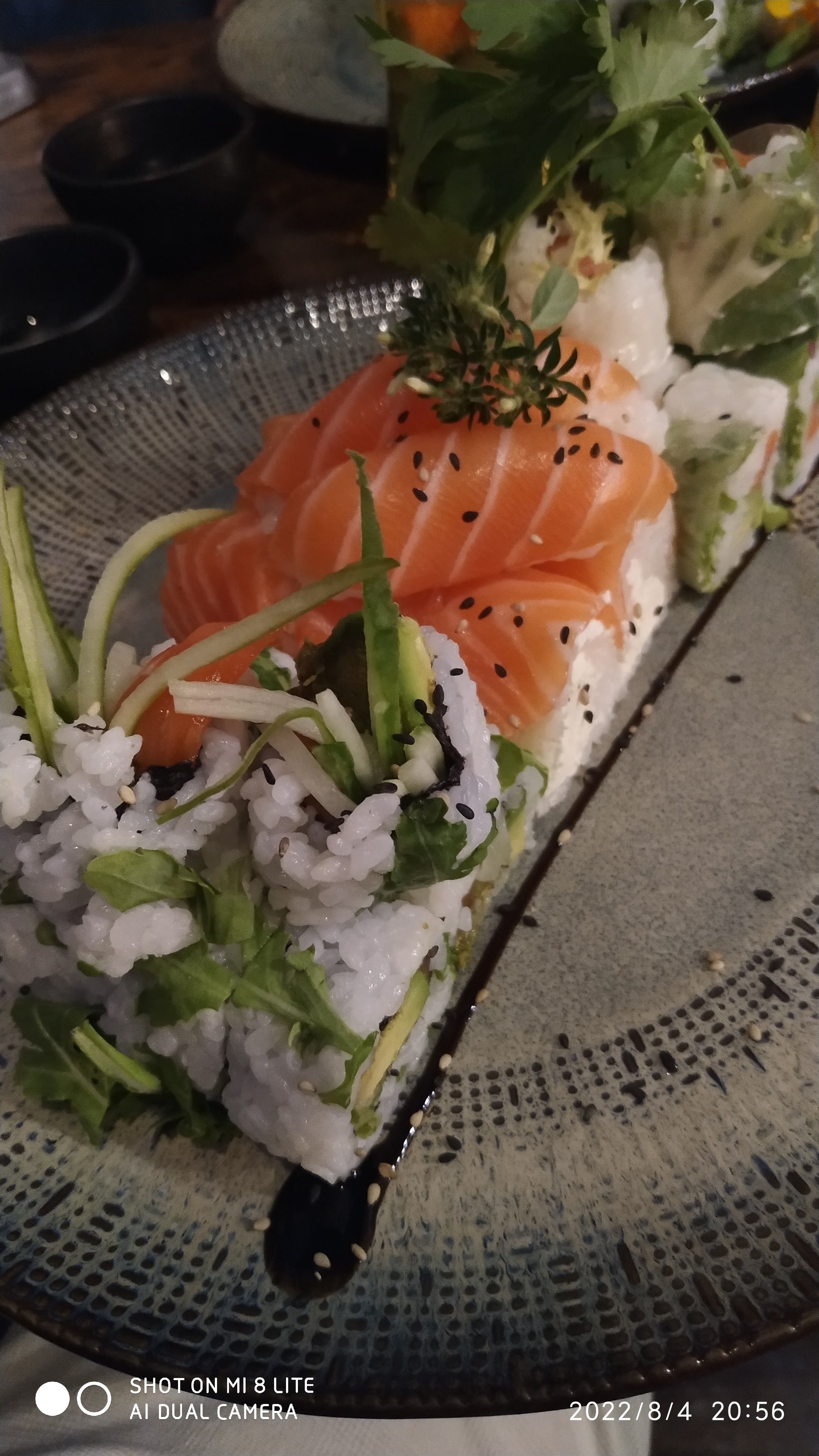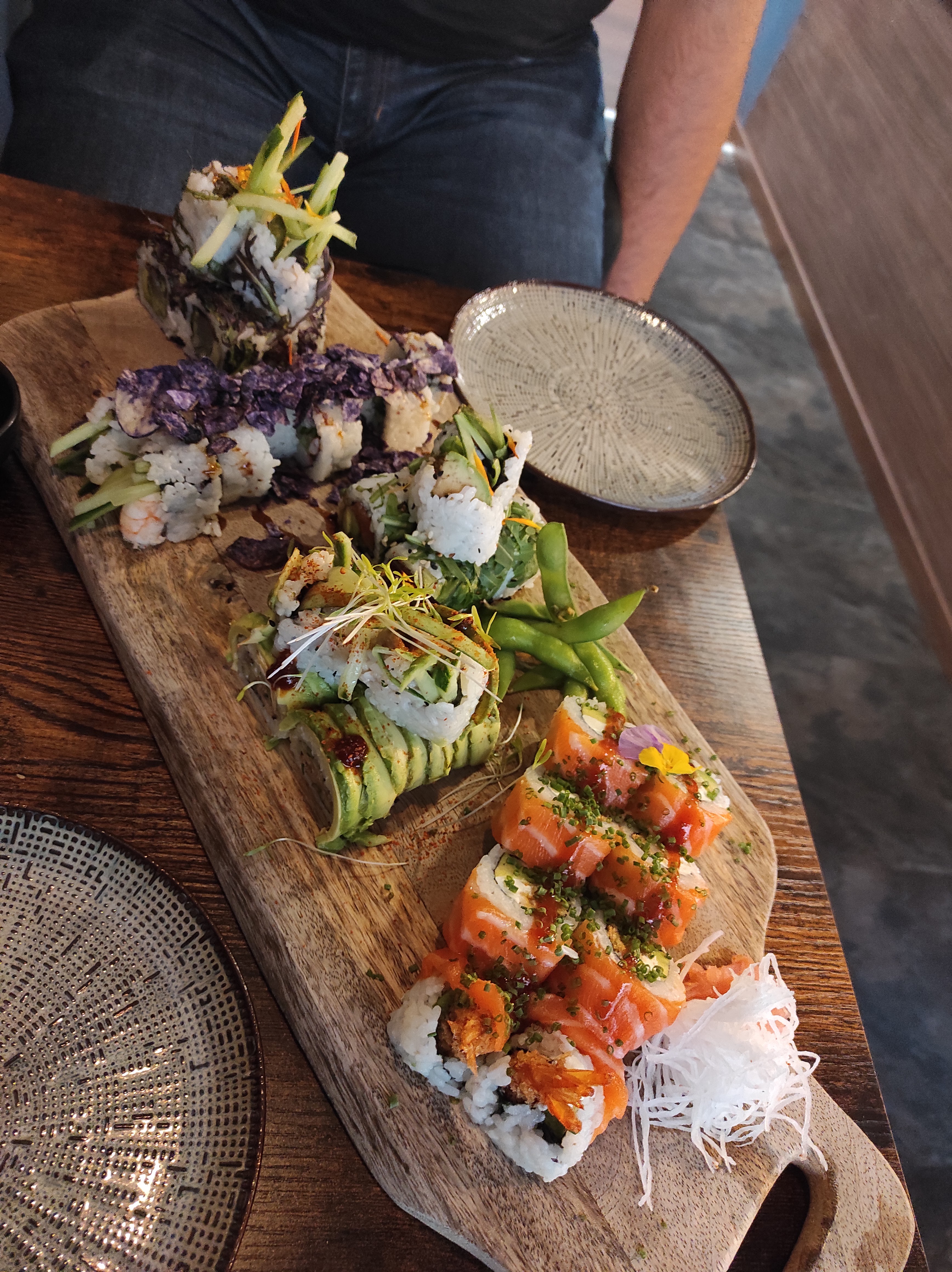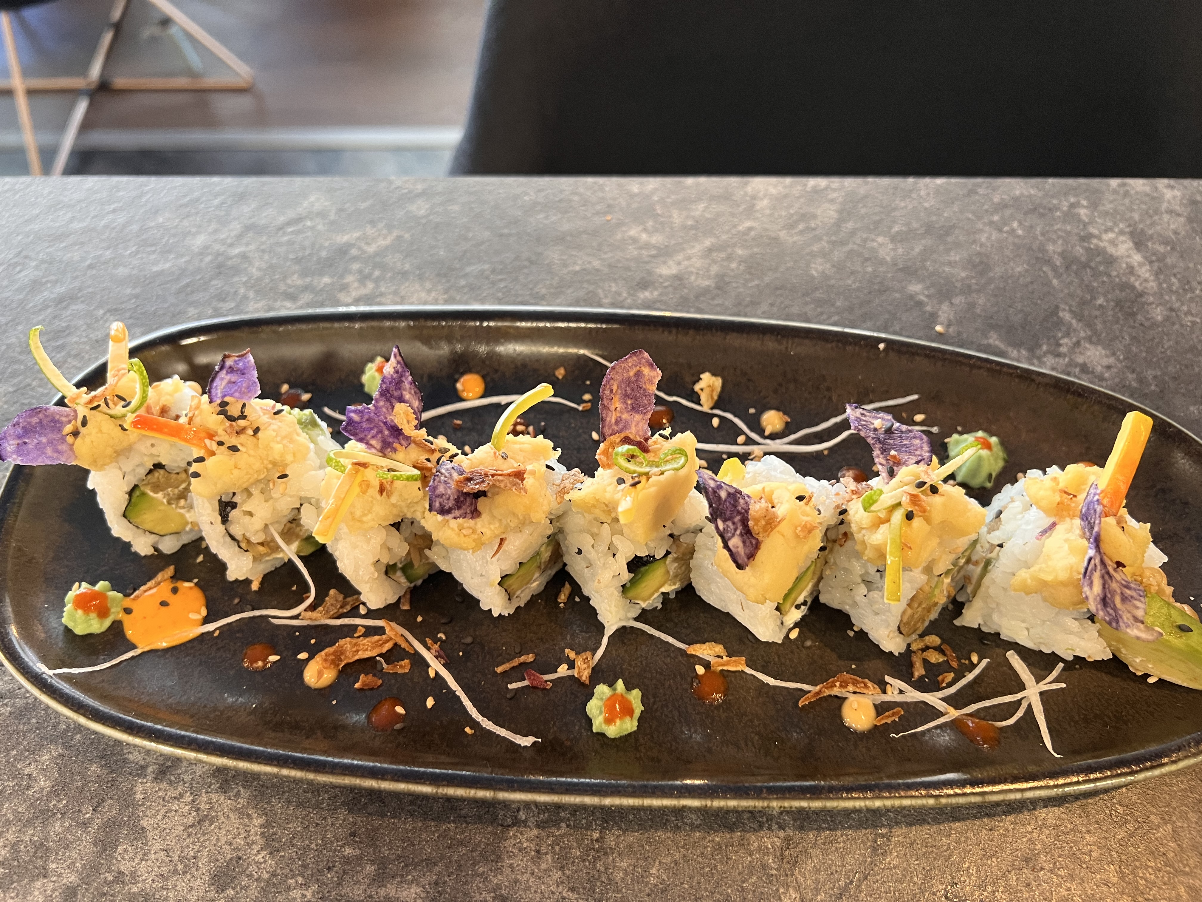 Nous sommes allés dans ce restaurant plusieurs fois en famille et avons également déjà commandé à emporter. Les plats sont franchement excellents ! Savoureux, innovants, bien présentés, en quantité satisfaisante... C'est le seul restaurant de sushis où je n'utilise jamais de sauce soja. Il y a aussi un large choix de rolls et makis végétariens variés et de très bonne qualité ! Gros bémol cependant : le service n'est pas à la hauteur. À chaque fois on attend longtemps, et les commandes sont inversées ou oubliées. Et c'est le même problème si on prend à emporter. C'est vraiment dommage parce qu'on adore la cuisine, mais le service nous déçoit toujours.