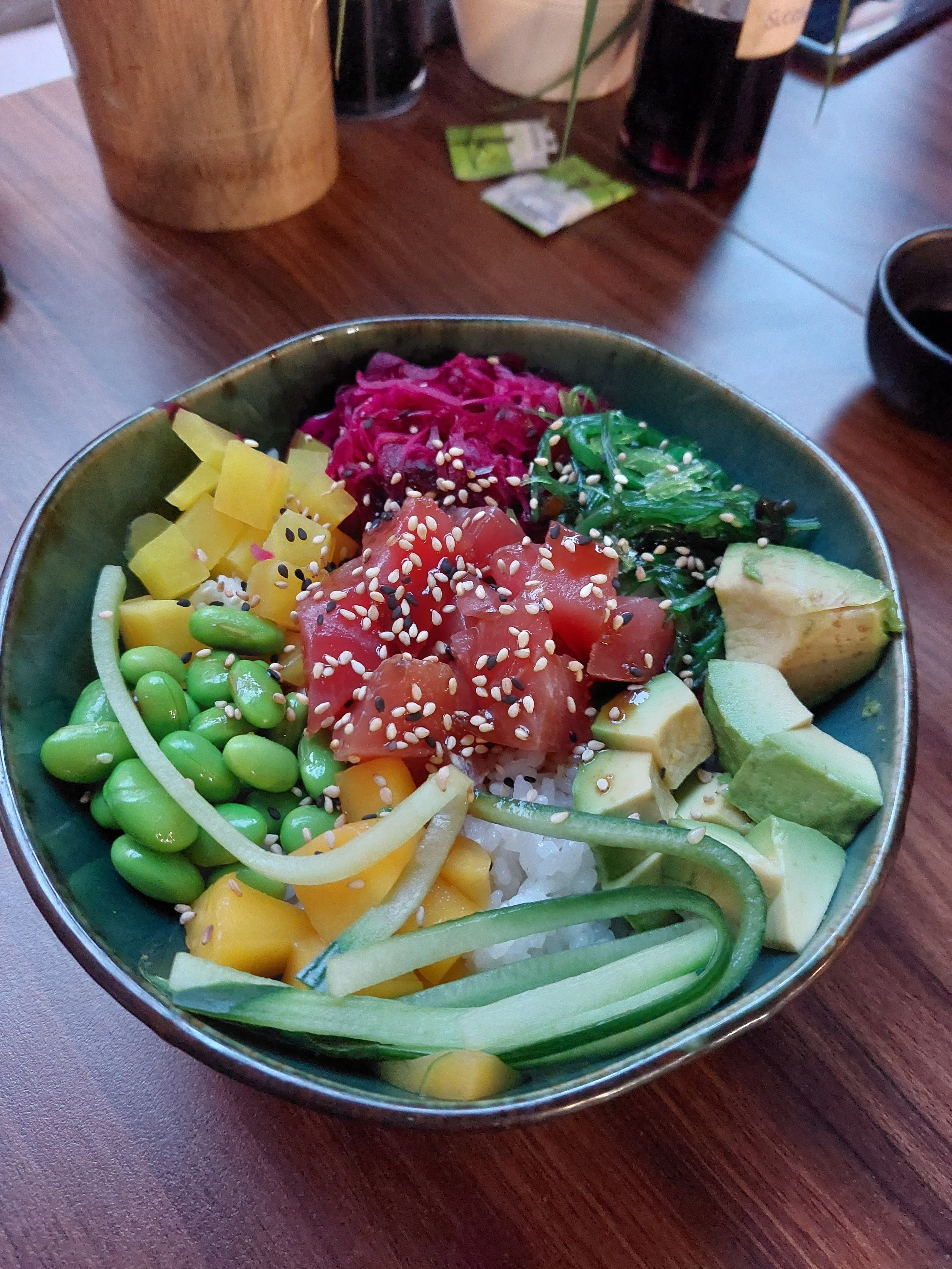Une première expérience étonnante. Belle ambiance et déco sympa, serveuse accueillante et poke bowl frais et delicieux! Enfin, une super adresse sushi!! Mais....15 j après, c'est pas la même, serveuse excédée, service incomplet, portions petites, ingrédients sortant de grands pots en plastique, hygiène des planches de préparation moyenne, le riz qui tient pas sous les sushi, une autre équipe?..on est ressorti en ayant faim et avec une note salée ! Quel dommage..on retentera quand même une troisième et dernière fois...