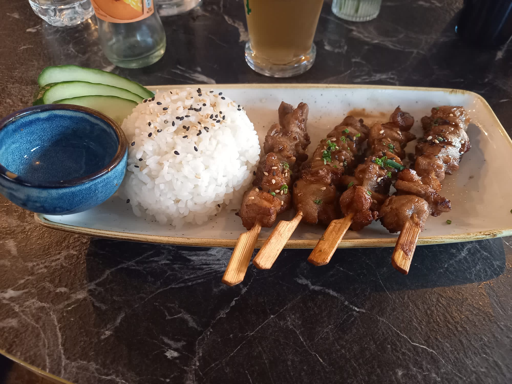 Bof comme repas et chère pour du riz et des brochettes qui ressemblent à du congelé :/ ..