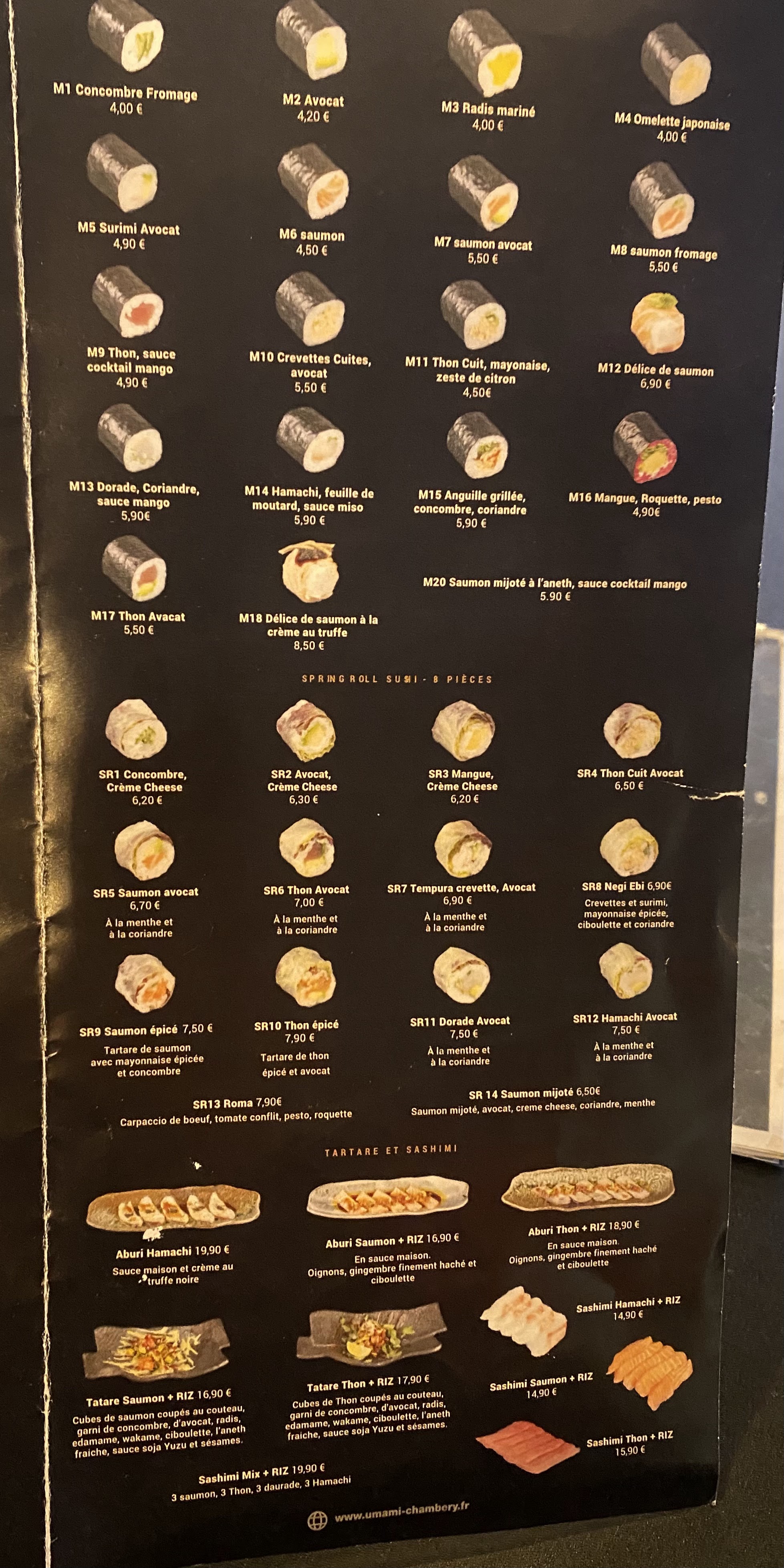En fait je n ai pas le poisson crus , chez umami chambery on déguste aussi des sushis aussi bien cuits que crus , des brochettes, et pleines de savoir incroyable. Je recommande ++++++🥰🥰🥰🥰j adore Merci d être à chambery