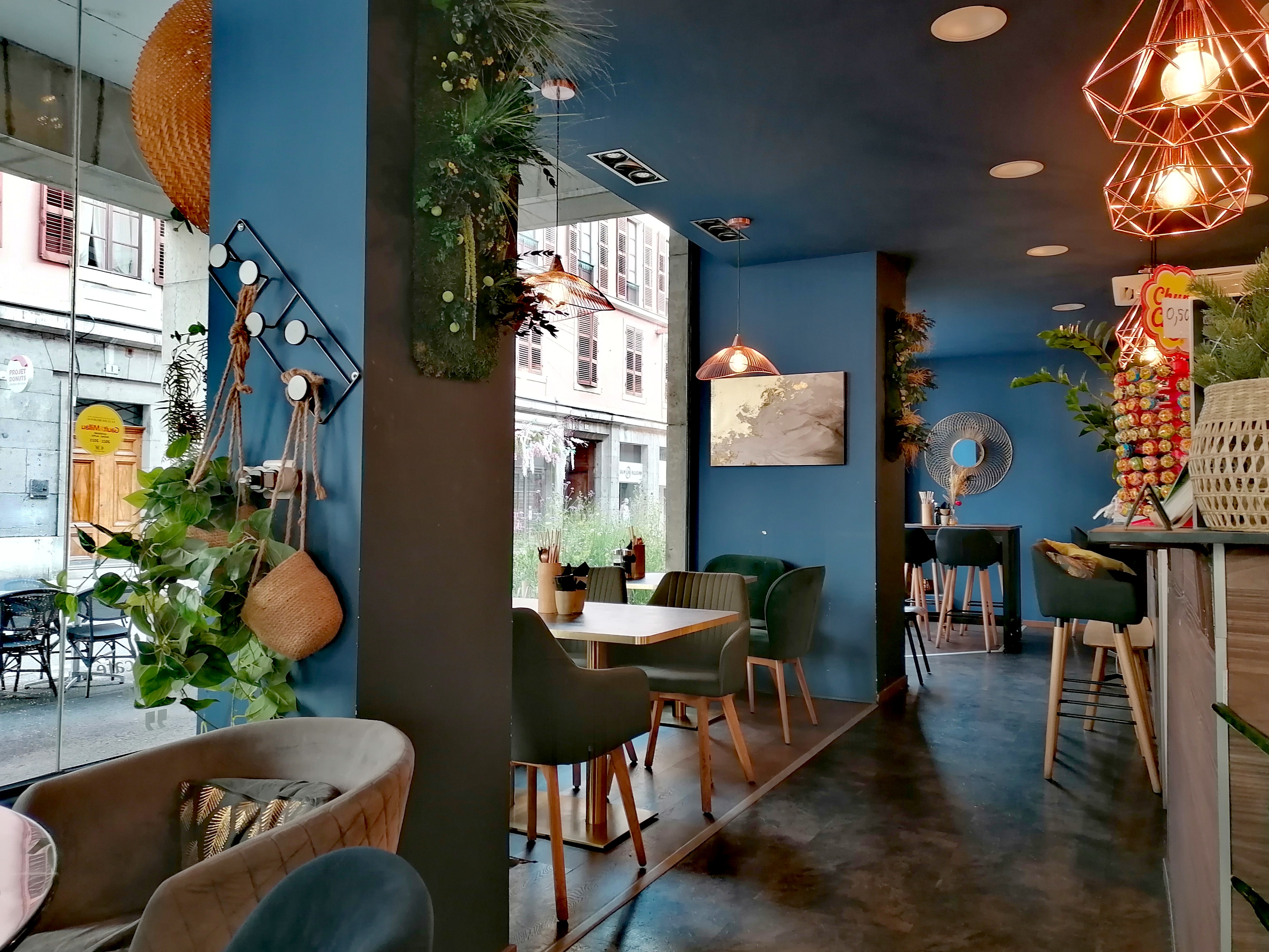 Accueil conviviale, très belle décoration.. cosi Possibilité de manger des sushis et/ou boire un café. Choix de glaces Cocktails avec ou sans alcool Smoothies Milkshakes. Je n’ai pas encore eu l’opportunité de goûter les sushis mais en tout cas le service et la qualité des boissons chaudes sont parfait. Juste un bémol la banque réfrigérer est un peu bruyante.