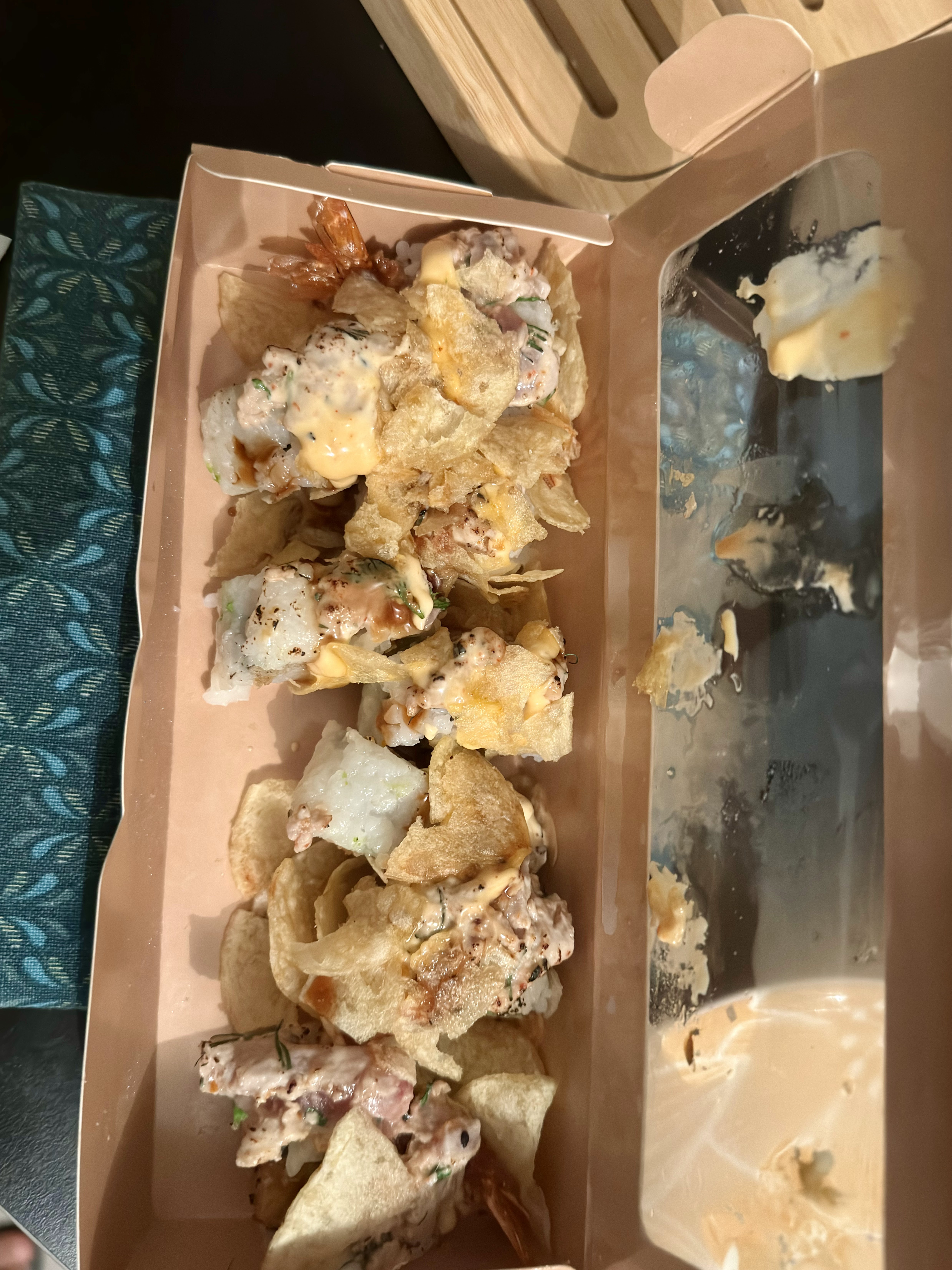 Nous sommes allés sur place deux fois et c’était excellent. Puis nous avons testé en livraison et ce fut une déception : la première fois la soupe n’est pas arrivée à destination (contenant non adapté pour du liquide) et la seconde fois, il n’en restait plus que la moitié et les sushis étaient sans saveurs avec des chips toutes moles ne ressemblant en rien au « Vulcan roll ». Il est préférable de consommer sur place. En livraison la qualité n’est clairement pas la même…