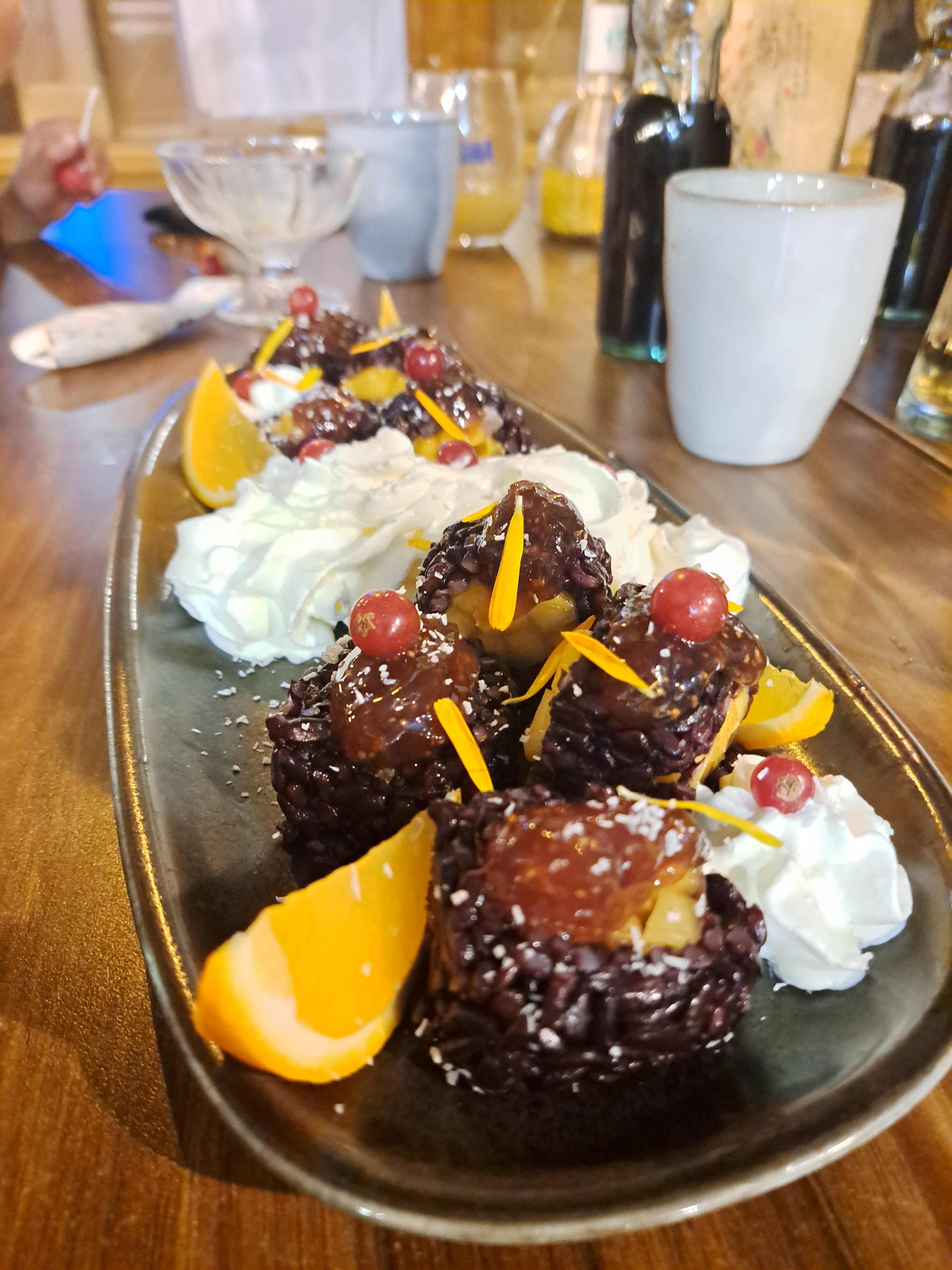 Service sympathique et rapide malgré la salle remplie un samedi soir. Nous avons l'habitude de fréquenter des restaurants qui proposent des sushis, mais ici l'originalité à sa place et les associations sont équilibrées et délicieuses. certaines recettes jouent sur le sucré-salé, et le Flower power en dessert on adore ❤️ Tout ça très joliment présenté. Rapport qualité-prix très bien 👌.