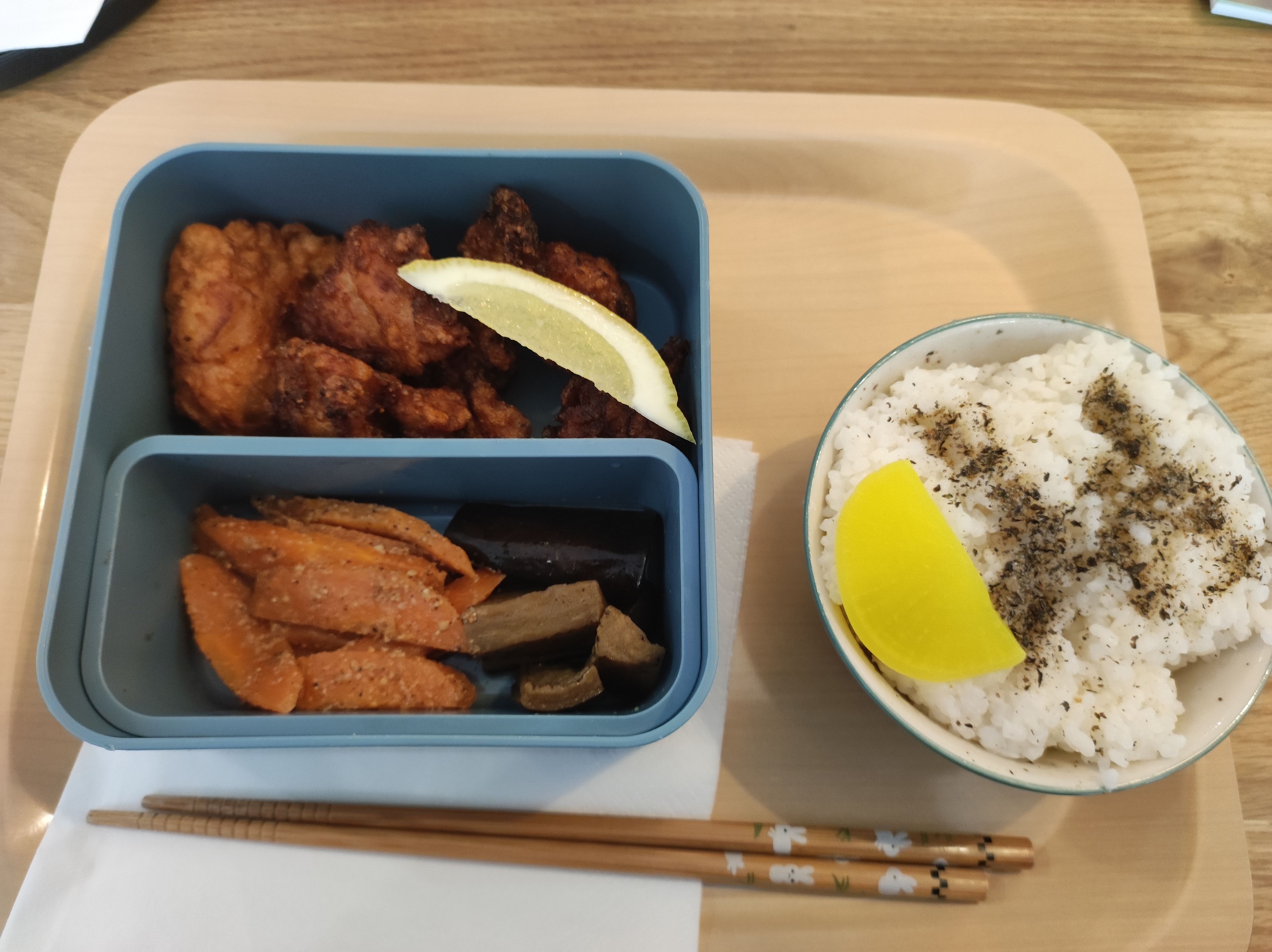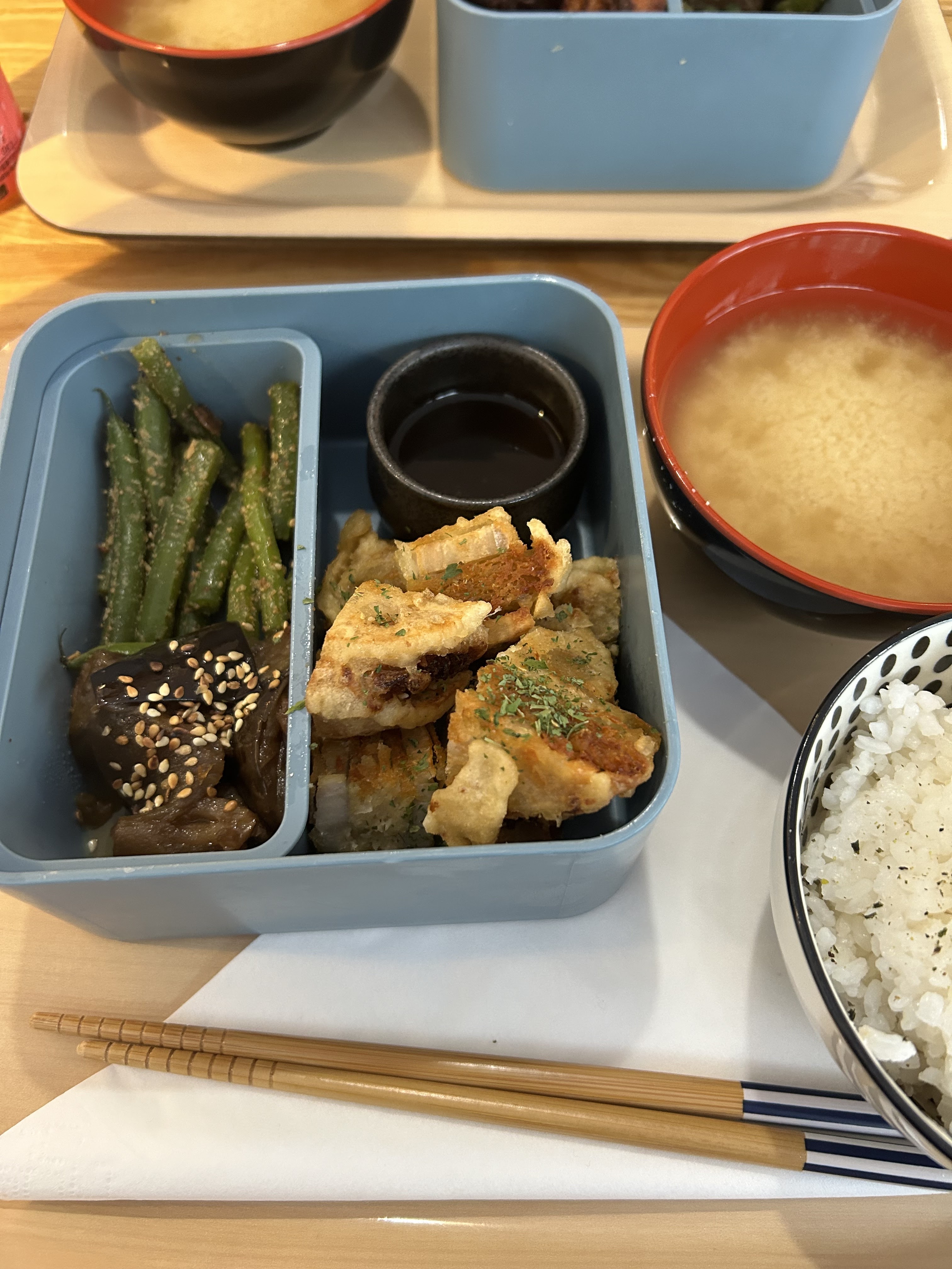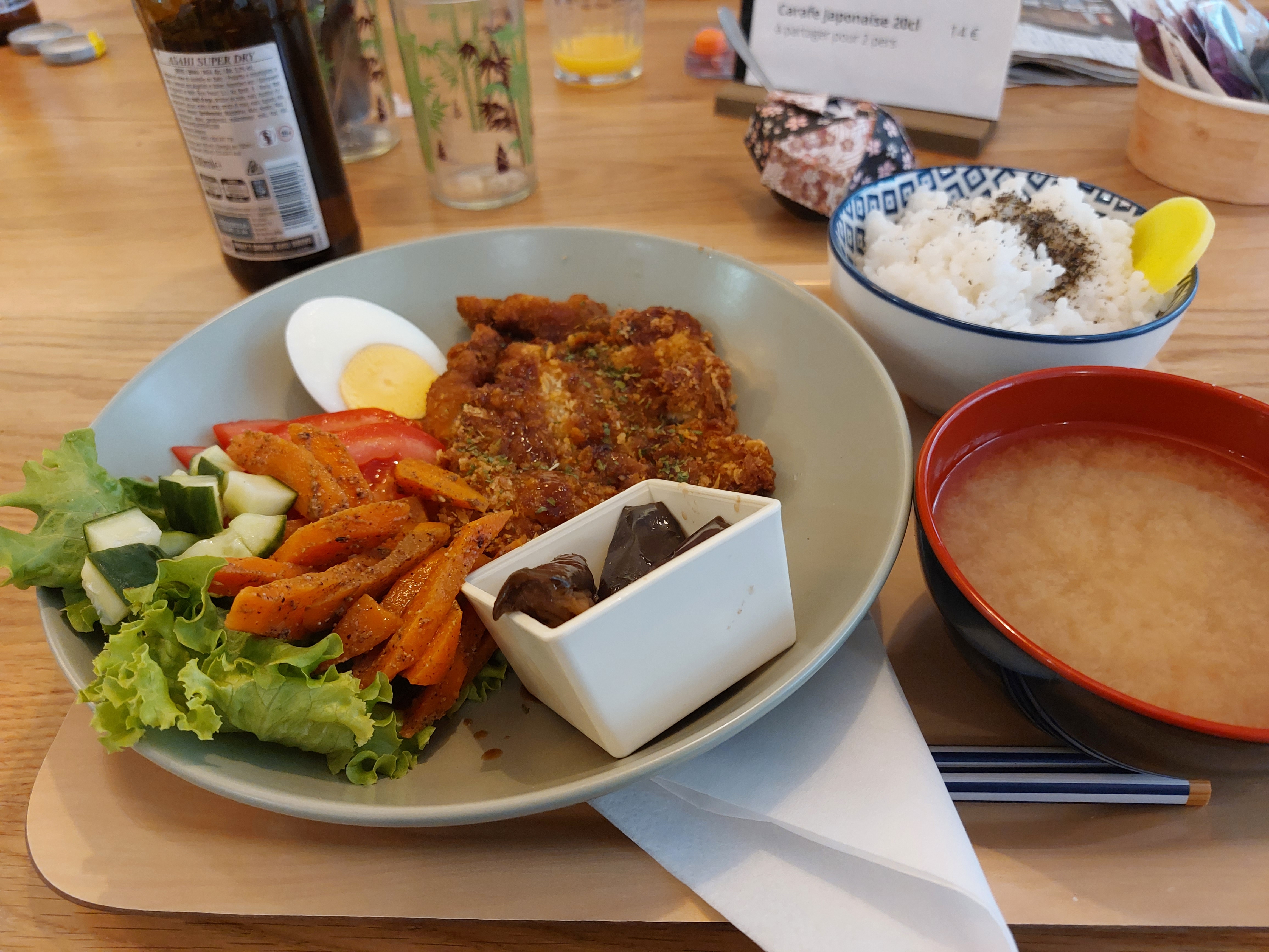 Nous nous sommes régalés, encore meilleur que les bentos de supermarché au Japon. Le poulet pané super croustillant et savoureux, les aubergines fondantes et pas grasses. Le porc émincé très bon aussi. Accueil souriant et prévenant. On reviendra.