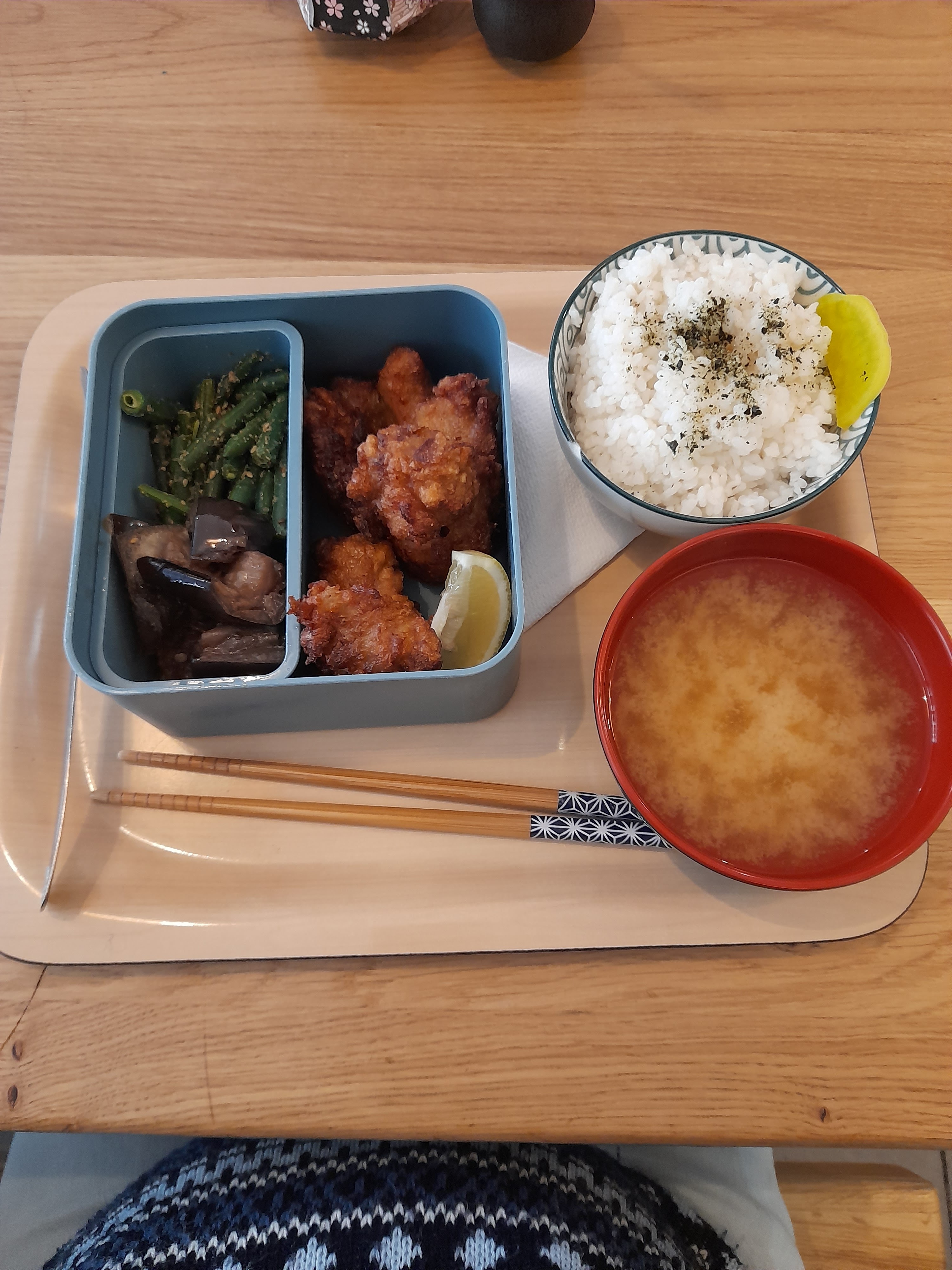 Déjeuner au Wa Bento.... Riz japonica, haricots verts marinés au sésame, aubergines marinées à la sauce aigre-douce et tara namban (Colin façon escabeche + carottes oignons poivrons).... 😋😋😋 Merci à Sakumi et Ayako pour cette belle découverte culinaire.....🤗🤗🤗 Je vous recommande cette cantine du quartier Chavanelle 👍👍👍